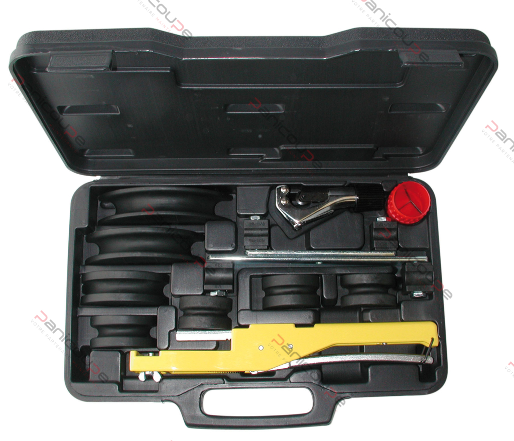 Kurzer Biegeradius. Müheloses Biegen bis zu 90°. Für Rohrdurchmesser 1/4˝, 5/16˝, 3/8˝, 1/2˝, 5/8˝, 3/4˝, 7/8˝. Rohrschneider von 4 bis 28 mm. Kunststoff-Entgrater 208.