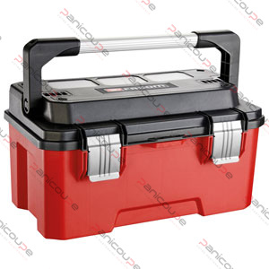 Verstärkter Polypropylen-Bunker, beständig gegen Stöße und übliche Chemikalien. Metallscharniere und -tüllen, hohe Festigkeit. Sicherer und komfortabler Aluminiumgriff. Vorhängeschließbare Metallverschlüsse. Herausnehmbares Tablett für den mobilen Einsatz. Befestigungsband in der Abdeckung. Abmessungen: 50,2 x 26,8 x 27,3 cm. Fassungsvermögen 36 Liter. Wird ohne Werkzeuge geliefert.