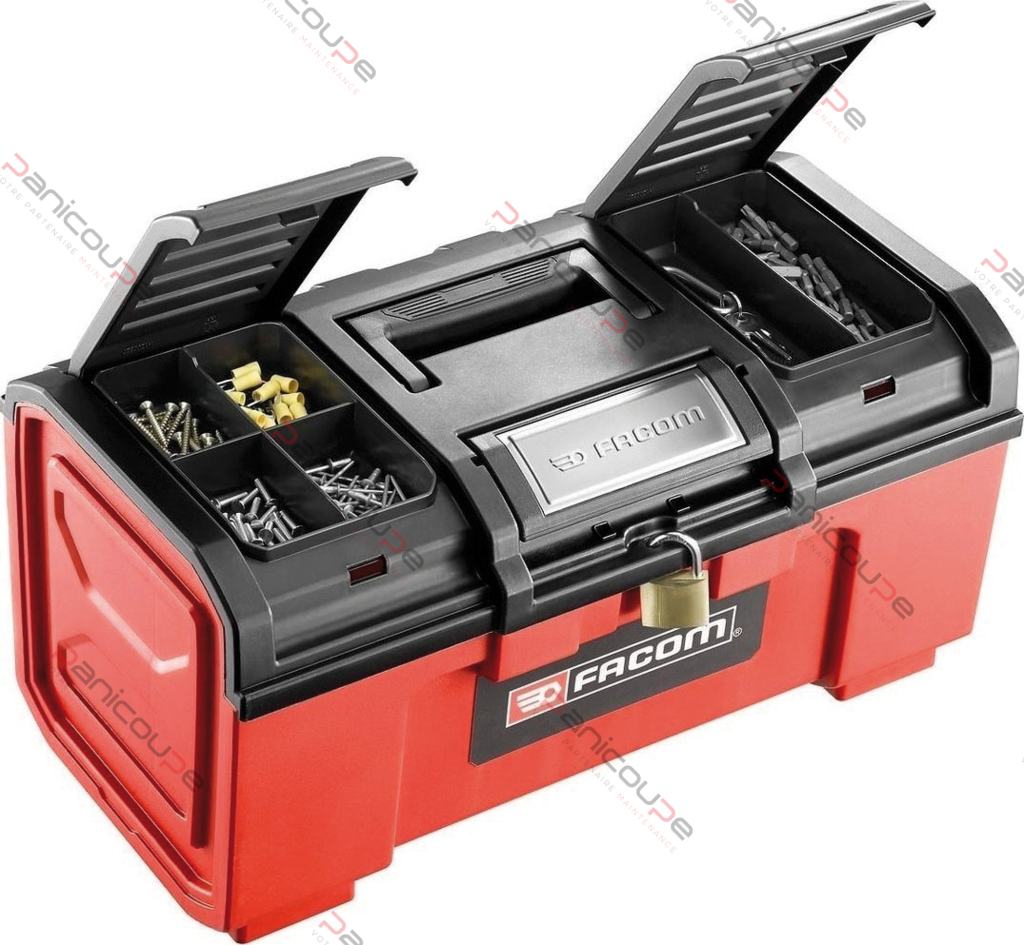 Hergestellt aus hochfestem Kunststoffmaterial. 2 Ablagefächer auf dem Deckel Widerstandsfähige Metallverschlüsse. Möglichkeit, ein Vorhängeschloss anzubringen. Einziehbarer Griff Abnehmbares Tablett Möglichkeit der Stapelung von Toolboxen gleichen Volumens ohne Gefahr des Absturzes Abmessungen: 49,3 x 25,6 x 24,8 cm. Ohne Werkzeug im Lieferumfang.