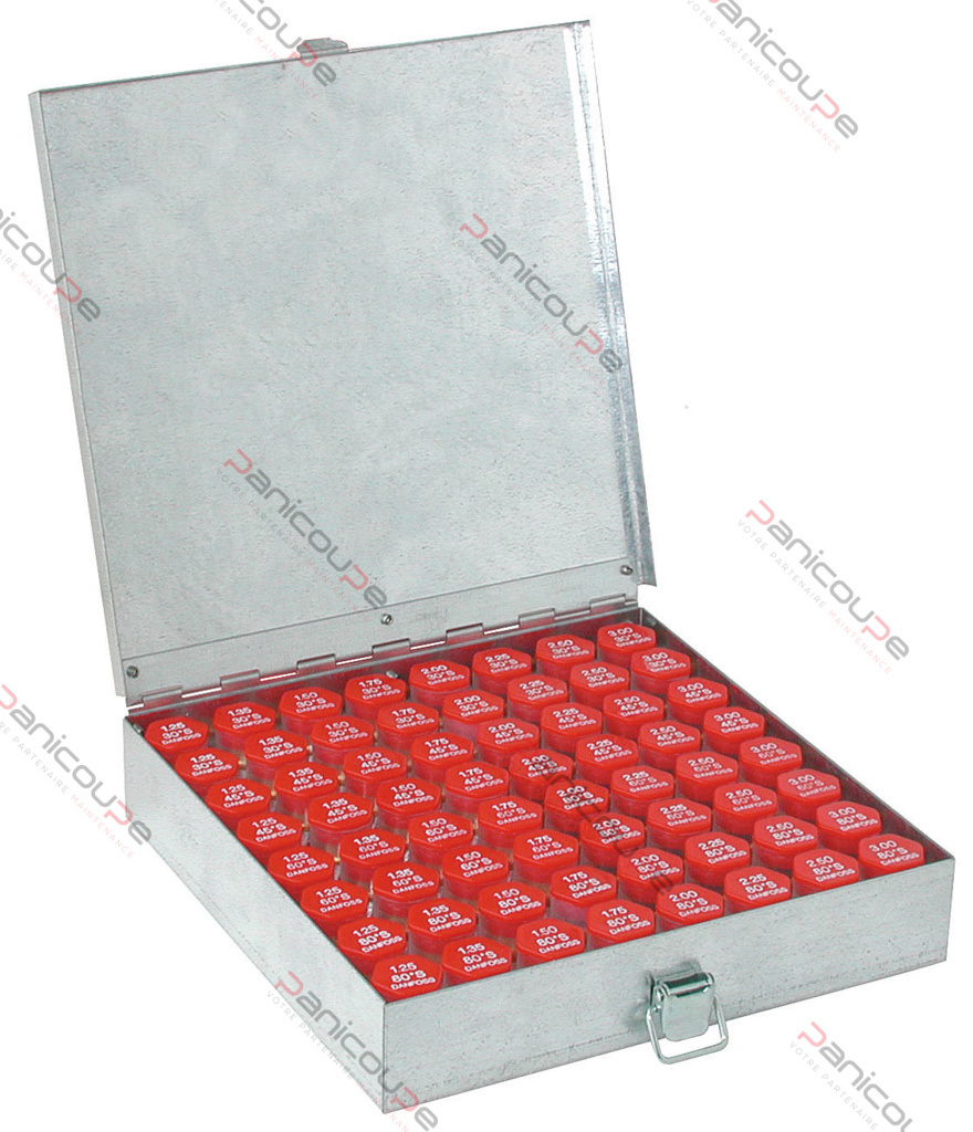 Malette métallique pour 64 gicleurs avec crochet de fermeture