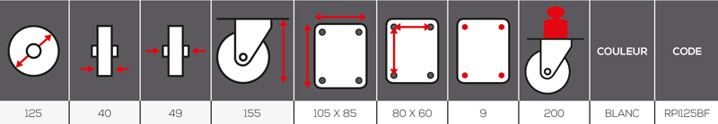 ROULETTES PIVOTANTES EN NYLON AVEC TIGE SANS FREIN