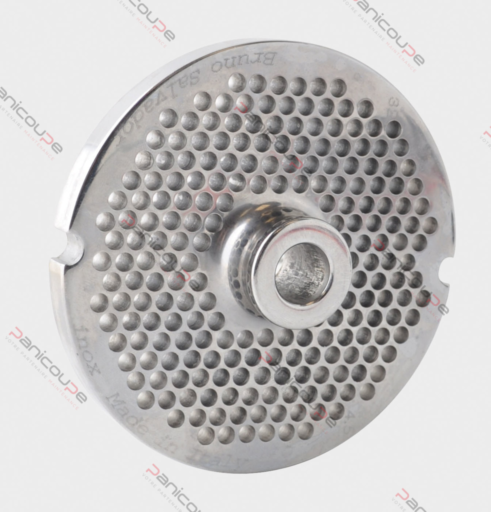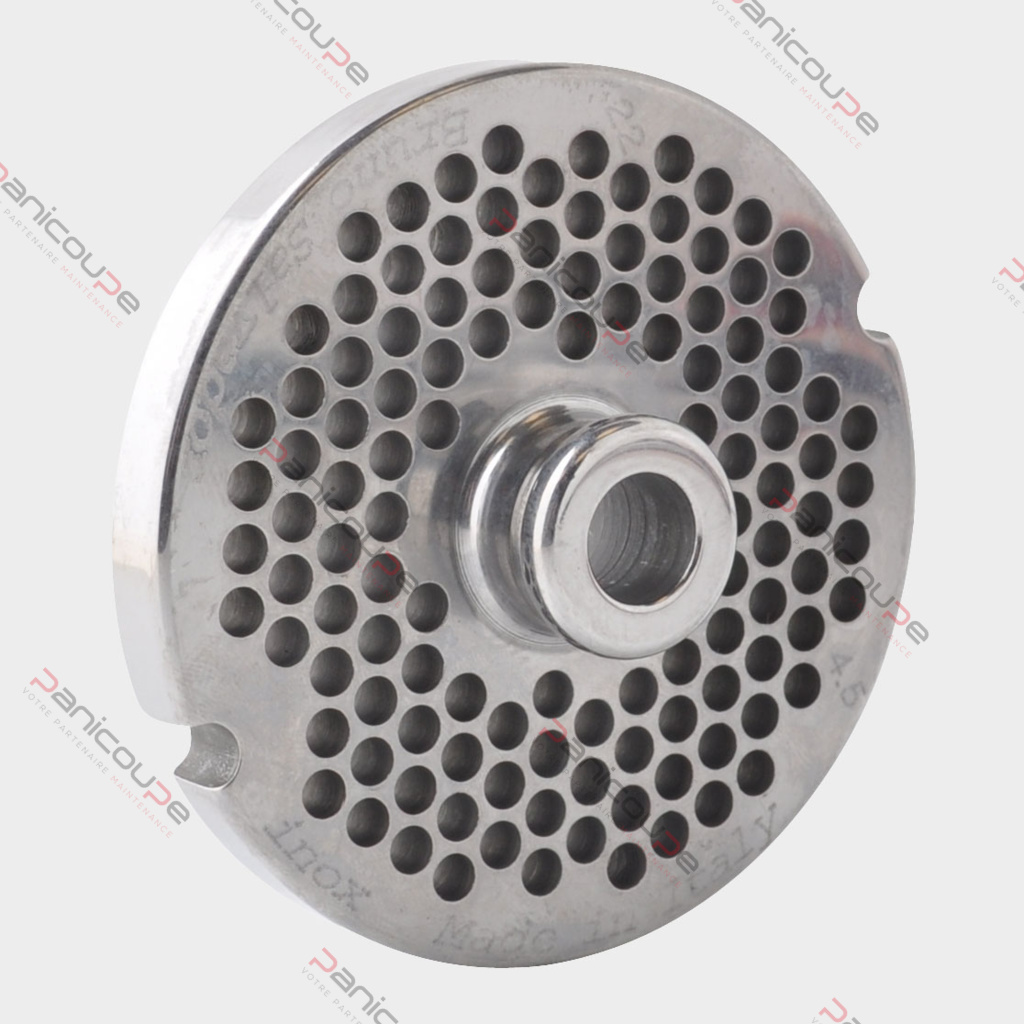 PI100315: Edelstahlplatte Modell 32/4.5 selbstschärfend, Ausstoßlöcher ø 4,5 mm, Außen-ø 99,7 mm – Mittelloch ø 13,3 mm, kompatibel: FAMA …