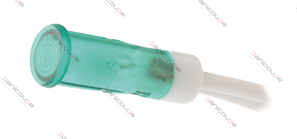 Ø ext. 7 mm pour découpe Ø 6 mm. Lampe incorporée. Corps clipsable. Raccordement par fils PVC 200 mm.